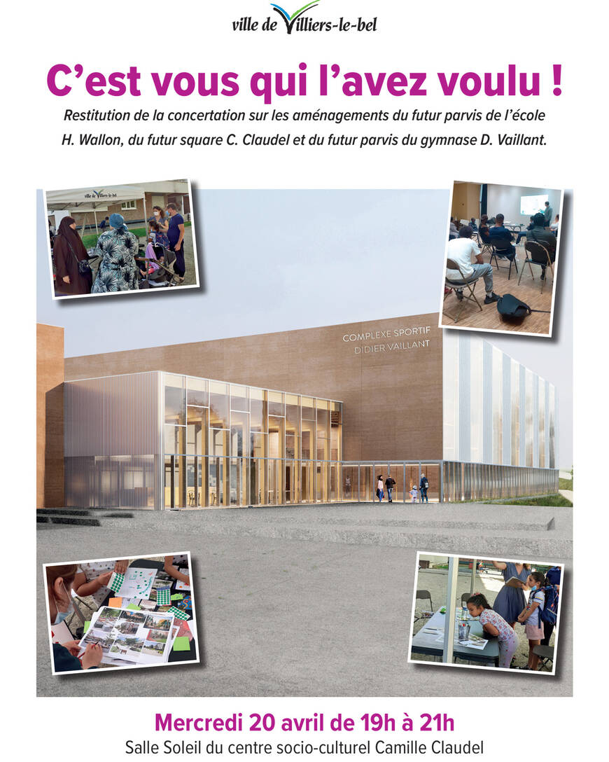 Restitution de la concertation sur les aménagements du futur parvis de l’école H. Wallon, du futur square C. Claudel et du futur parvis du gymnase D. Vaillant