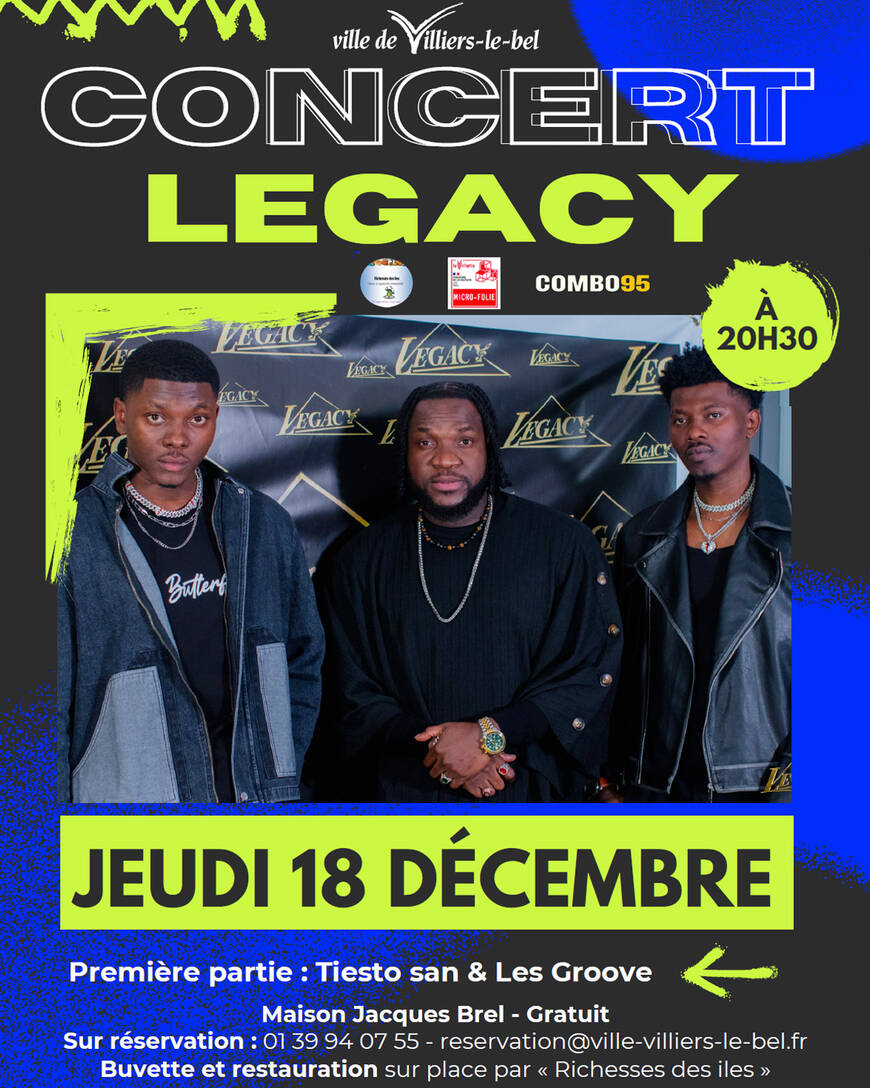 44, avenue Pierre-Sémard - 95400 Villiers-le-BelLegacy se produit en concert à la Maison Jacques Brel avec en première partie, Tiesto san & Les Groove !
