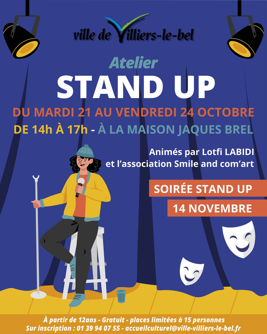 44, avenue Pierre-Sémard - 95400 Villiers-le-Bel Lotfi Labidi et l’association Smile and com’art vous initient à l'art du Stand Up en attendant la soirée humour du 14 novembre 2025 !