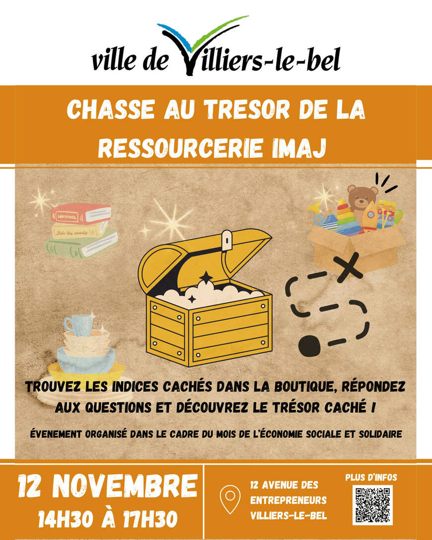 12 rue des Entrepreneurs - 95400 Villiers-le-BelPartout dans la boutique des indices seront cachés ! Rendez-vous en famille ou entre amis pour les découvrir, répondre aux questions pour, enfin, mettre la main sur le trésor !