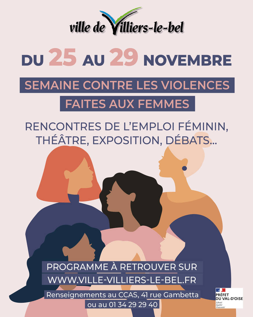 La Ville de Villiers-le-Bel est engagée depuis plusieurs années dans la lutte contre les violences intrafamiliales. A l'occasion de la Journée internationale de lutte contre les violences faites aux femmes du 25 novembre, la Ville vous propose un programme d'animations du 25 au 29 novembre 2025.