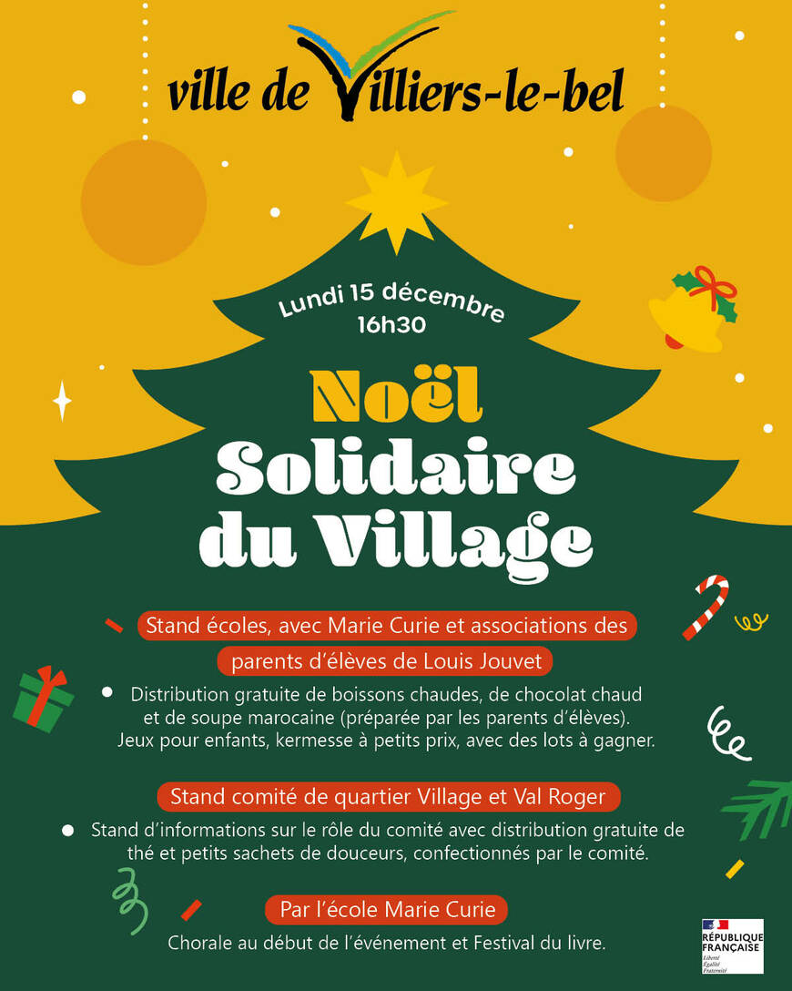 Des spectacles, des animations, des cadeaux pour toutes et tous et même un feu d’artifice… Villiers-le-Bel fête Noël en grand pour toutes les Beauvillésoises et tous les Beauvillésois participent à la fête. À commencer par le Marché de Noël les 20 et 21 décembre, puis des Noëls solidaires avec les centres socioculturels et au Village !