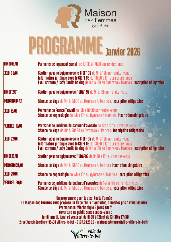 Maison des Femmes – 01 34 29 29 29 – maisondesfemmes@ville-villiers-le-bel.fr