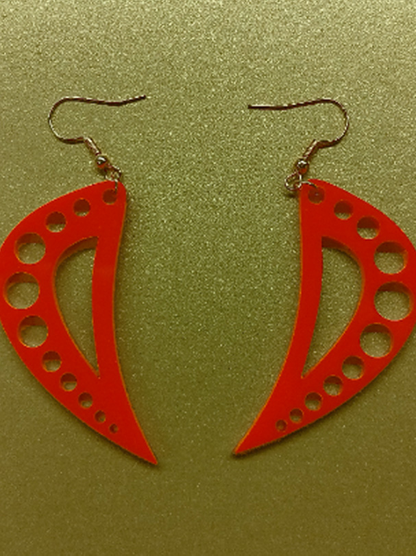 Un exemple de création ci-dessous : découpe laser sur plaque de plexiglas rouge.