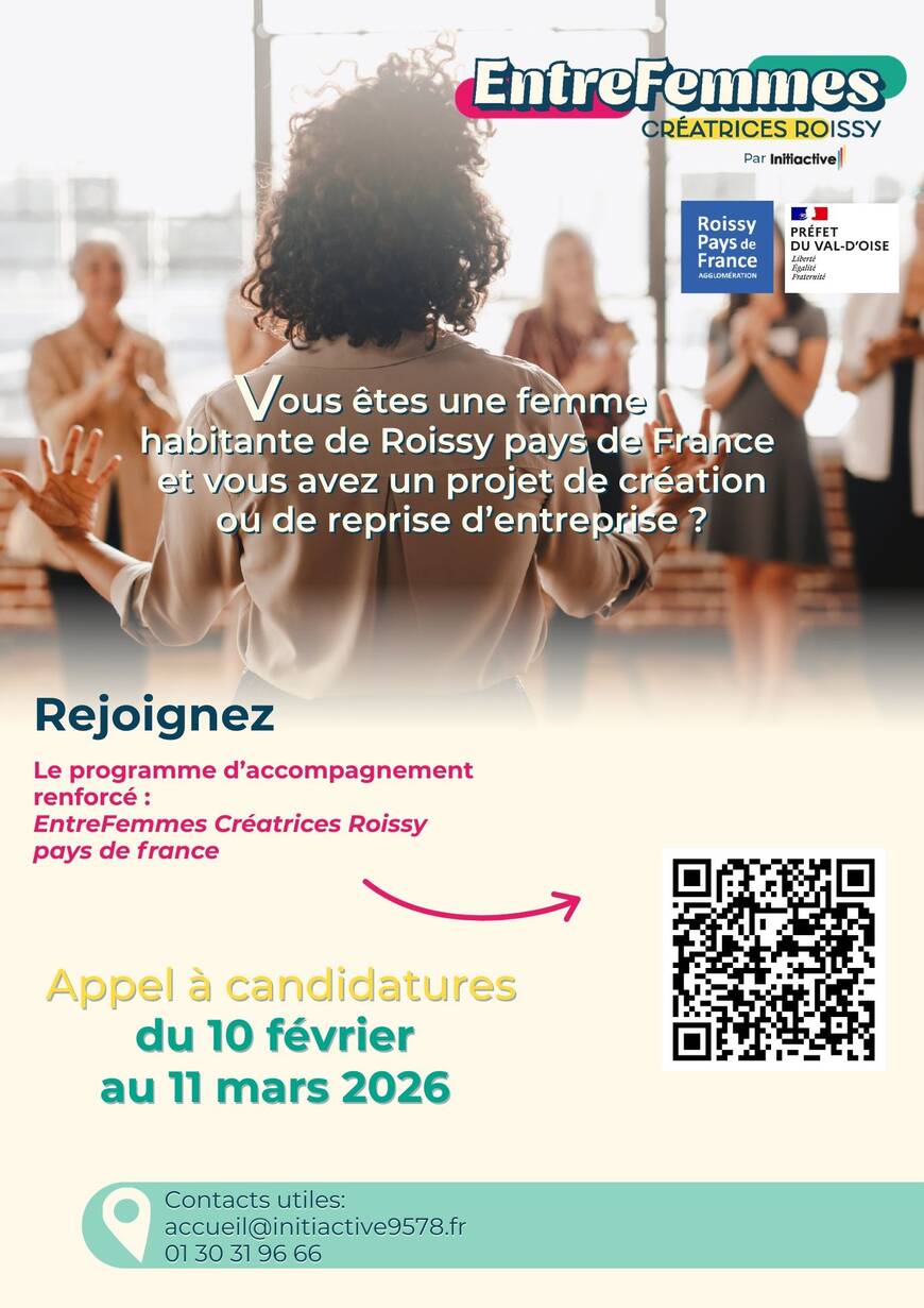 Le programme EntreFemmes Créatrices Roissy est lancé ! Vous êtes une femme avec un projet de création ou reprise d’entreprise et vous habitez Roissy Pays de France ? Candidatez au parcours d’accompagnement renforcé.