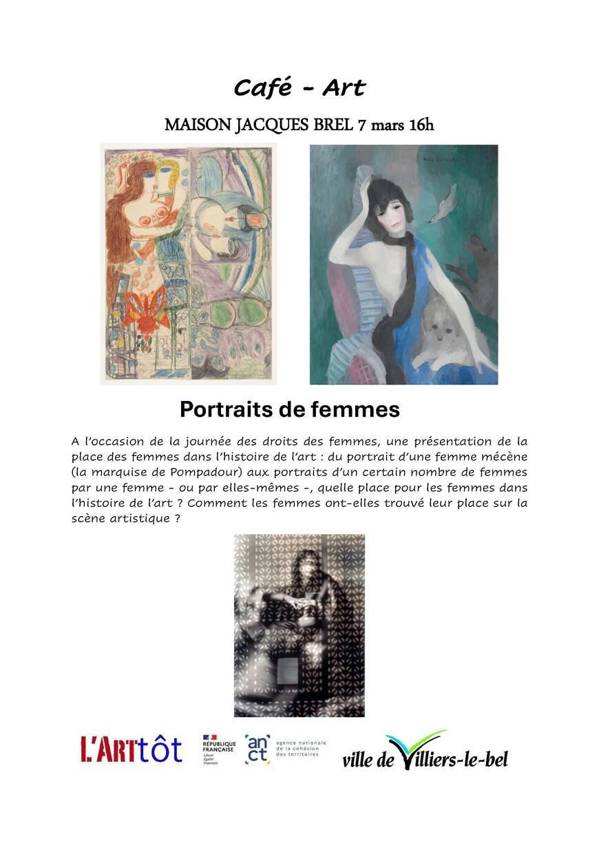 44, avenue Pierre-Sémard - 95400 Villiers-le-BelÀ l’occasion de la Journée internationale des droits des femmes, l'association L'ART TÔT propose un Café-Art autour de la place des femmes dans l’histoire de l’art, à travers une sélection d’œuvres du musée numérique.