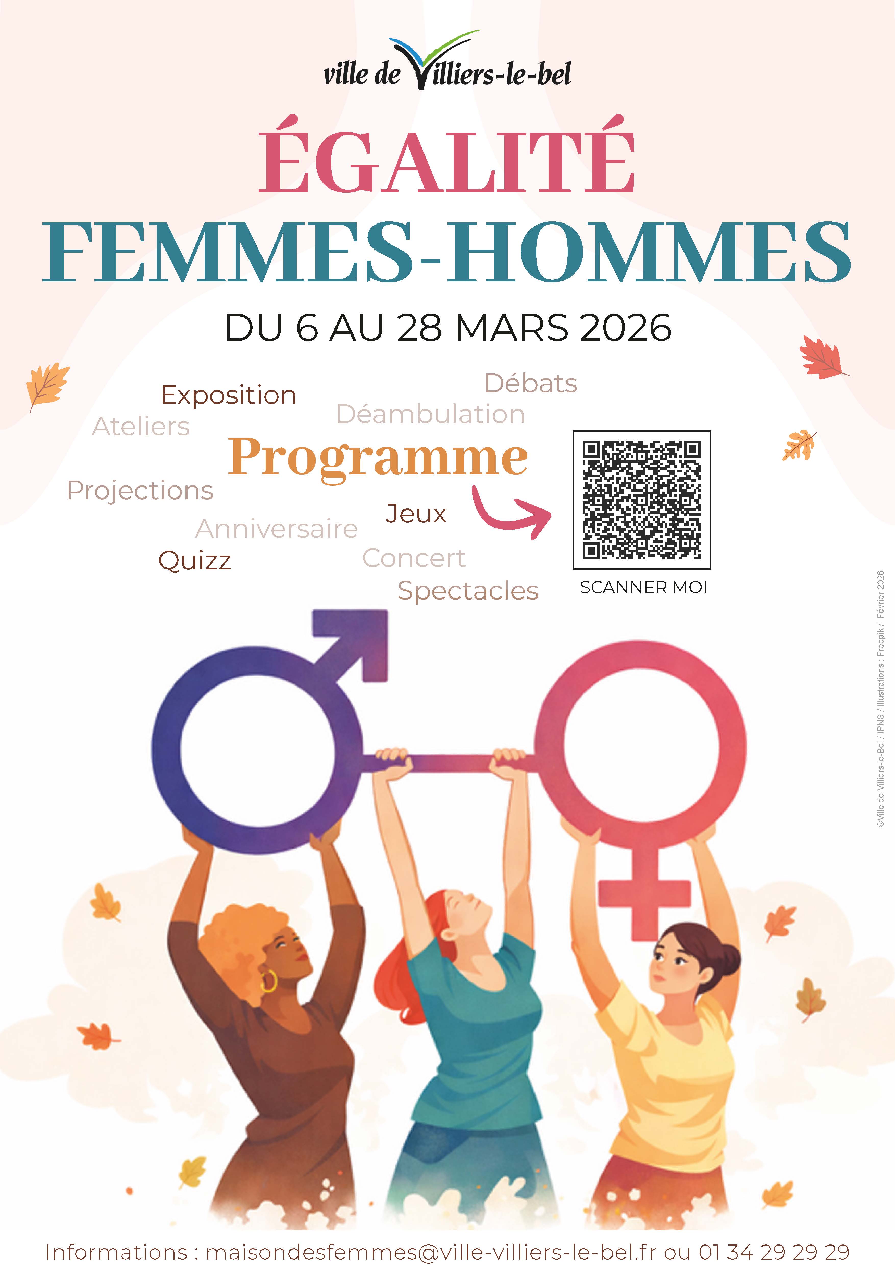 Du 6 au 28 mars 2026, on se remonte ensemble les manches pour faire avancer l’égalité femmes-hommes à Villiers-le-Bel, avec des rendez-vous sportifs, culturels et participatifs et un temps fort le 8 mars pour le premier aniversaire de la Maison des femmes.