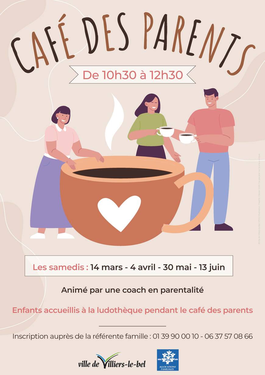 32 bis, avenue du 8 Mai 1945 - 95400 Villiers-le-BelLe centre socioculturel Camille Claudel propose plusieurs rendez-vous « Café des parents », animés par une coach en parentalité, les samedis 4 avril, 30 mai et 13 juin, de 10h30 à 12h30.