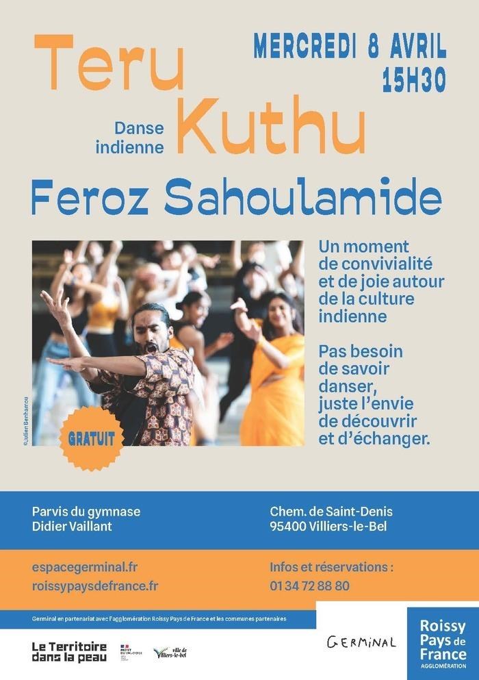 Rue Simone Veil - Villiers-le-Bel Mercredi 8 avril 2026 à 15h30, le danseur et chorégraphe Feroz Sahoulamide propose un atelier de danse indienne « Teru Kuthu », ouvert à tout public, sur le parvis du gymnase Didier Vaillant.
