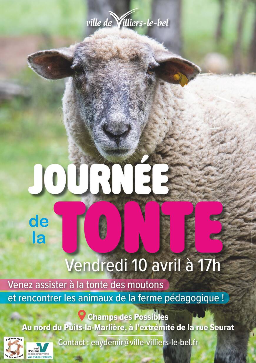 Les Champs des Possibles accueillent une Journée de la tonte vendredi 10 avril à 17h. Une occasion d'assister à la tonte des moutons et de découvrir la ferme pédagogique et ses animaux avec Val d'Oise Habitat et l'Association Les Ass du Puits.
