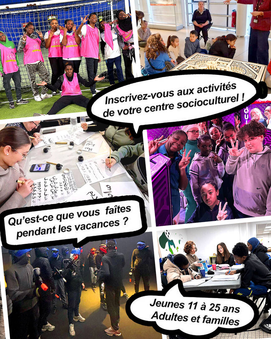 Qu'est-ce que vous faîtes pendant les vacances ? Les inscriptions pour les activités des vacances de Printemps approchent. Que ce soit pour le centre Salvador-Allende, Boris-Vian ou Camille-Claudel, rendez-vous dans votre centre socio-culturel pour vous inscrire.