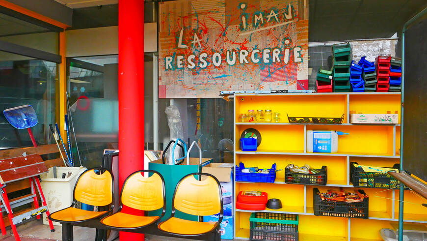 Rue du Champ Bacon, la Ressourcerie d’IMAJ emploie des salariés, dont une bonne moitié de jeunes en chantier d’insertion. Cet environnement de travail adapté leur permet de faire une entrée progressive dans le monde de l’entreprise.