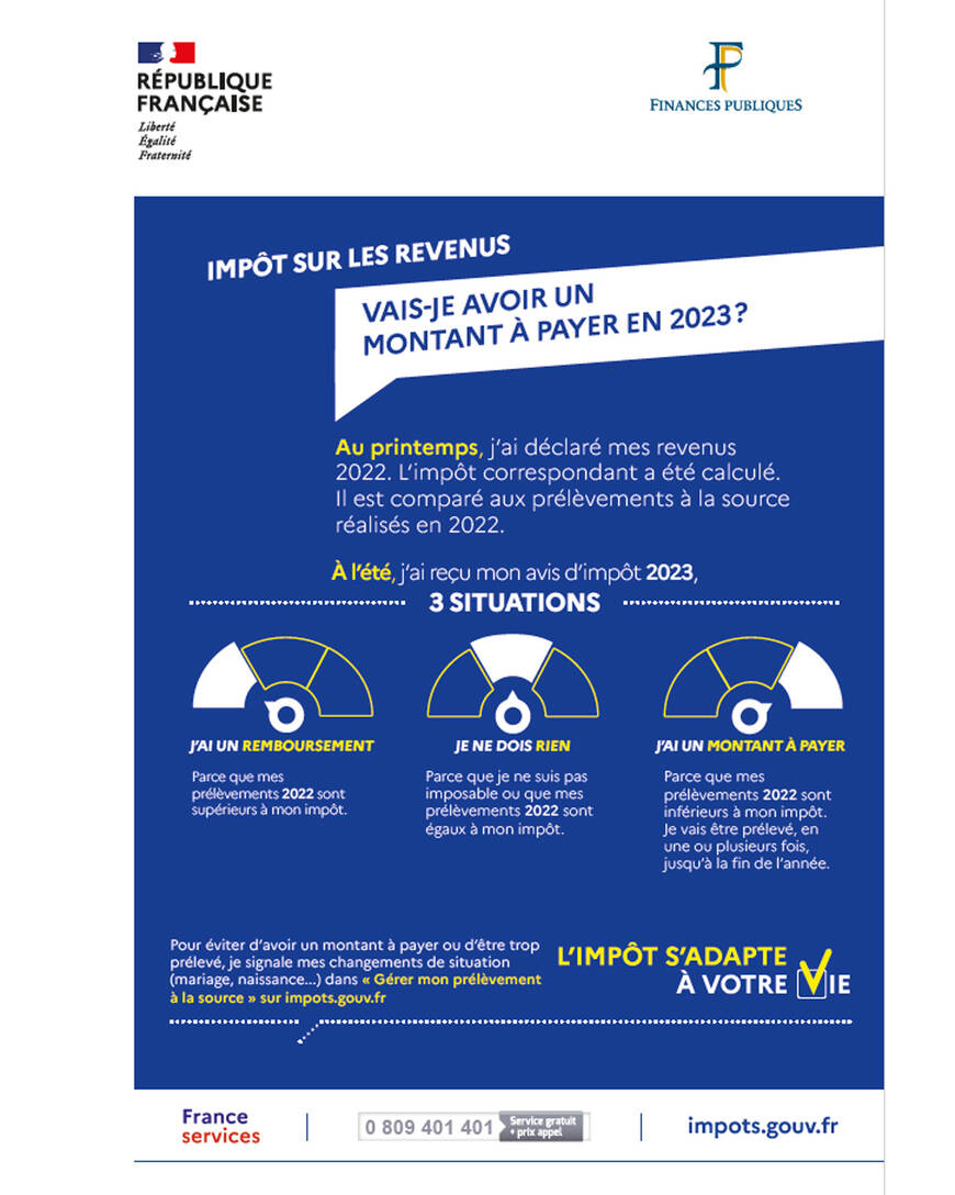 Vous pouvez consulter votre avis d'imposition à l'impôt sur le revenu à partir du 26 juillet 2023 et celui de vos impôts locaux à partir du 24 août 2023.
