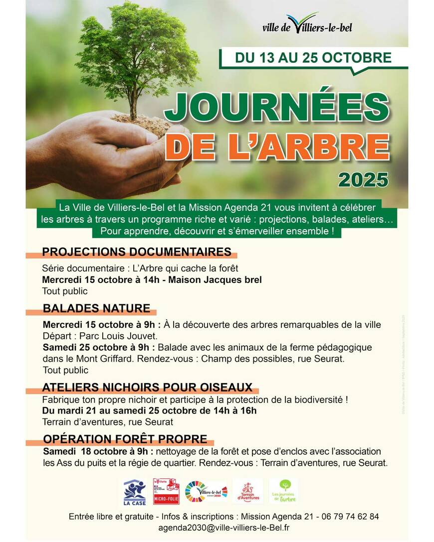 La Ville de Villiers-le-Bel et la Mission Agenda 21 vous invitent à célébrer les arbres à travers un programme riche et varié : projections, balades, ateliers… Pour apprendre, découvrir et s’émerveiller ensemble !