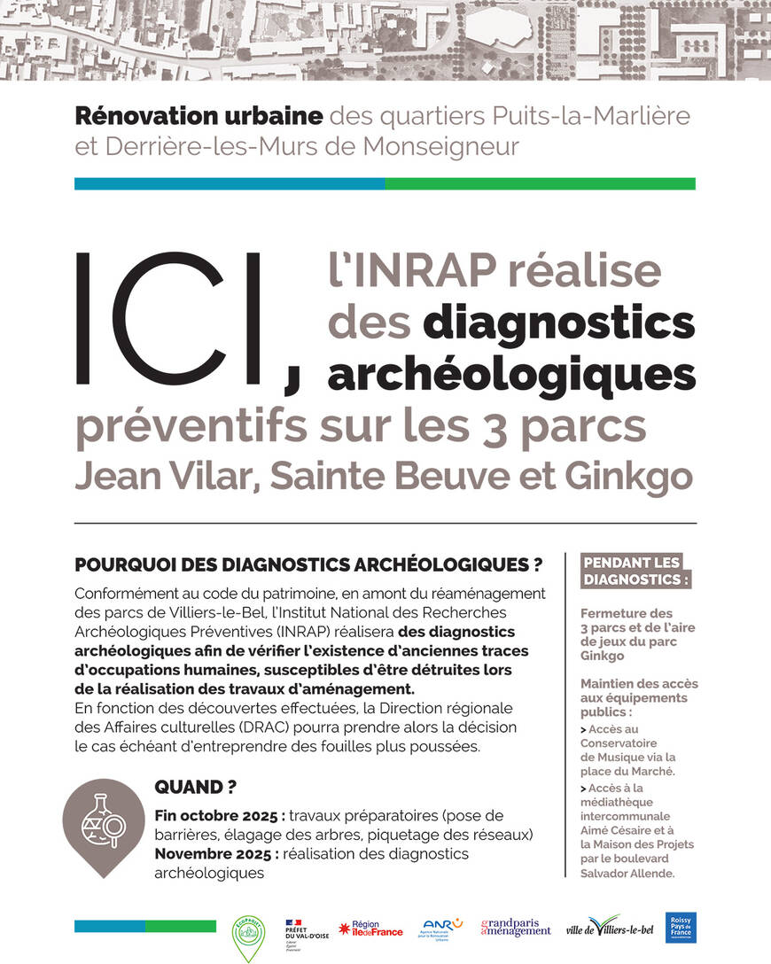 Dans le cadre du réaménagement des trois parcs Jean Vilar, Sainte Beuve et Ginkgo, des diagnostics archéologiques préventifs doivent être menés. Le temps d’effectuer cette étude, dès la fin octobre et tout du long du mois de novembre 2025, les 3 parcs ne peuvent plus accueillir de visiteur.