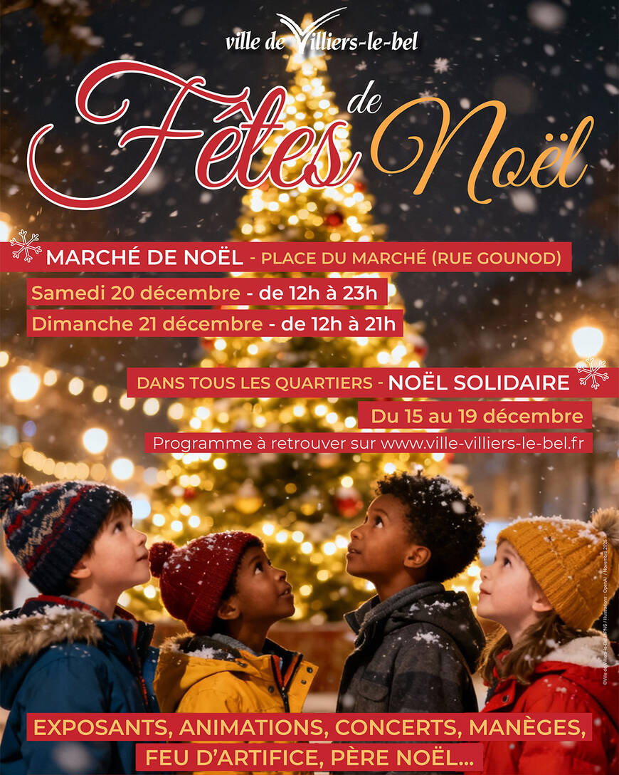 Des spectacles, des animations, des cadeaux pour toutes et tous et même un feu d’artifice… Villiers-le-Bel fête Noël en grand pour toutes les Beauvillésoises et tous les Beauvillésois participent à la fête. À commencer par le Marché de Noël les 20 et 21 décembre, puis des Noëls solidaires avec les centres socioculturels et au Village !