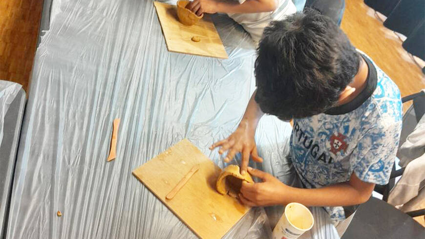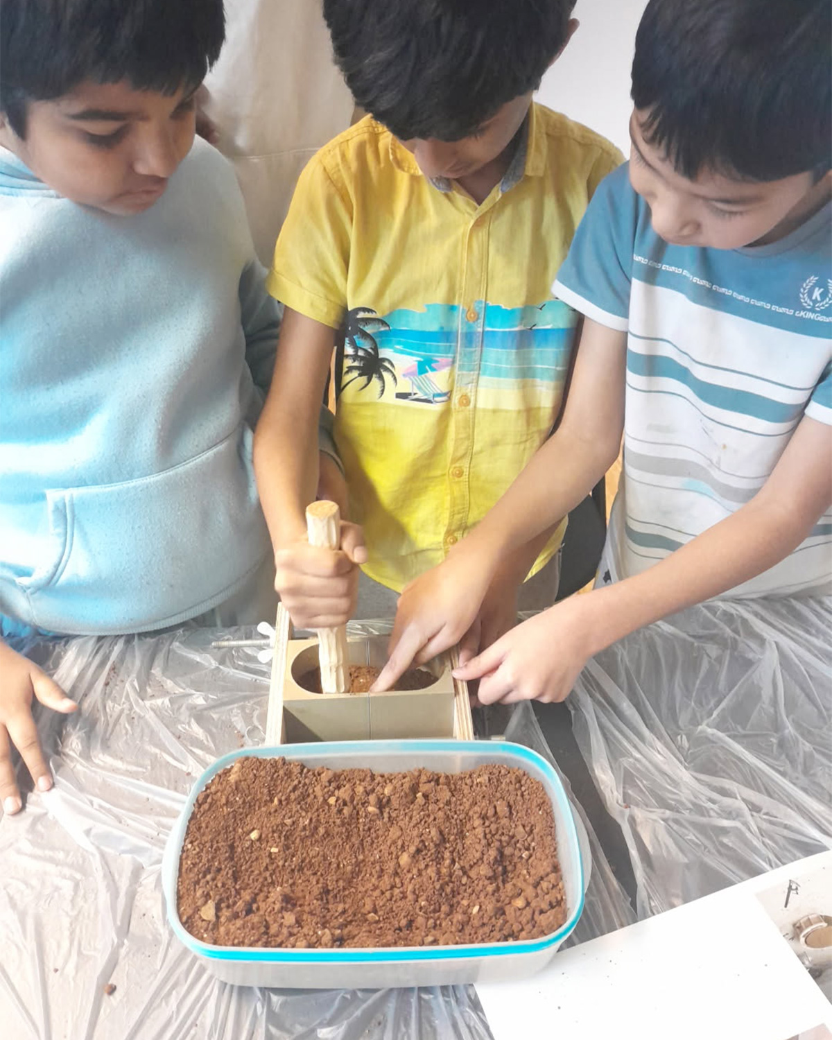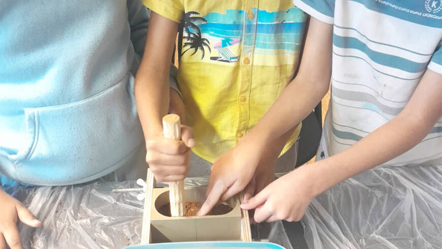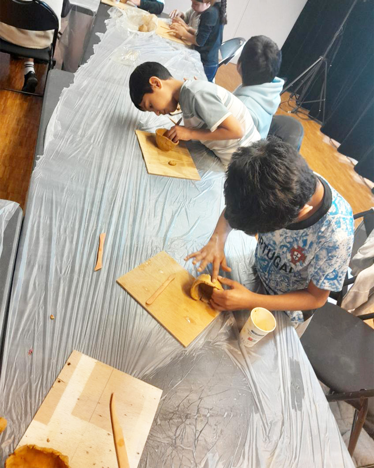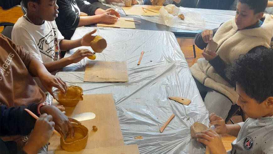 Ils ont également pris part à un atelier céramique construit en plusieurs étapes : découverte de l’histoire de la céramique, fabrication d’ustensiles, création d’un livret de recettes, confection d’un grand four en terre, sans oublier deux temps de visite à ARCHÉA autour des collections et de l’exposition consacrée à la couleur rouge.