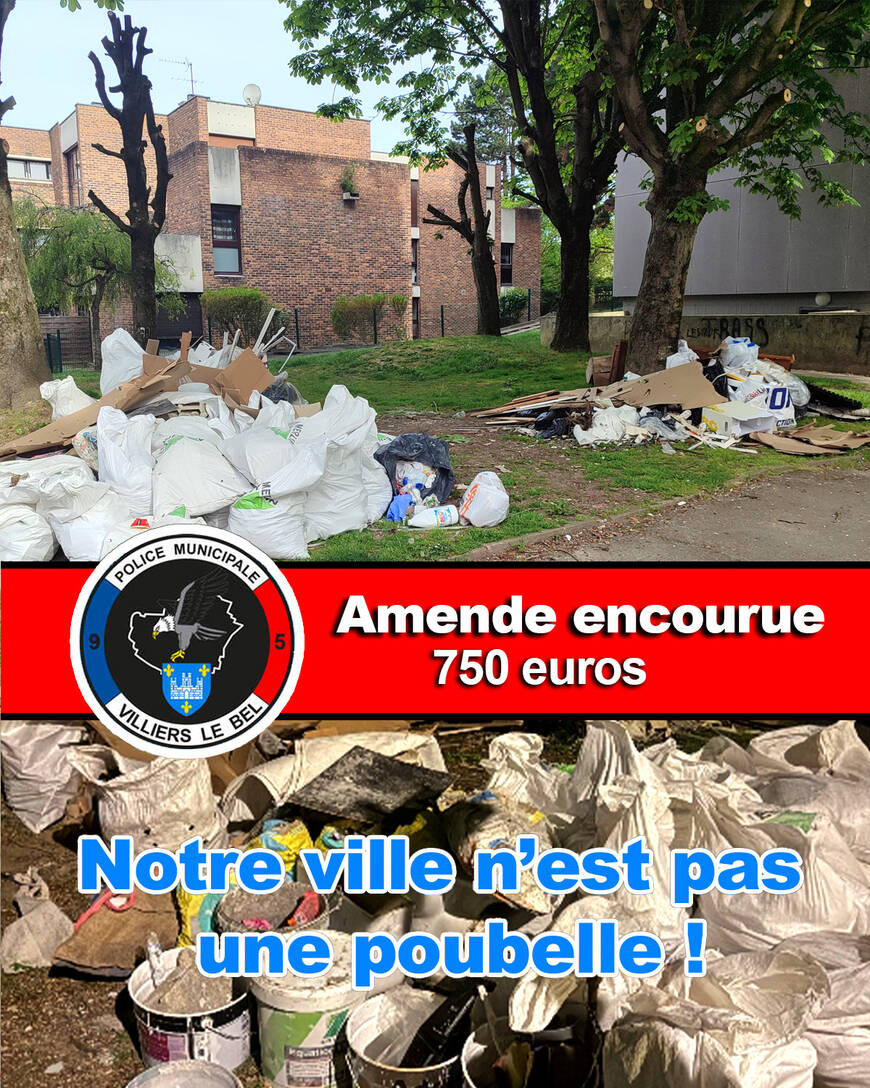 Pour ce dépôt d'immondices au Puits-la-Marlière dont l'auteur a été identifié par la Police municipale de Villiers-le-Bel, le signalement a été transmis à l'Officier du ministère public à Sarcelles.