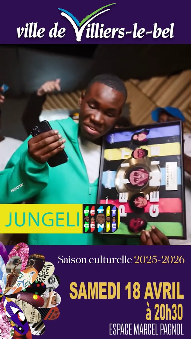 Jungeli sera à Villiers-le-Bel le 18 avril 2026 à l'Espace Marcel Pagnol !