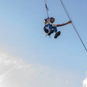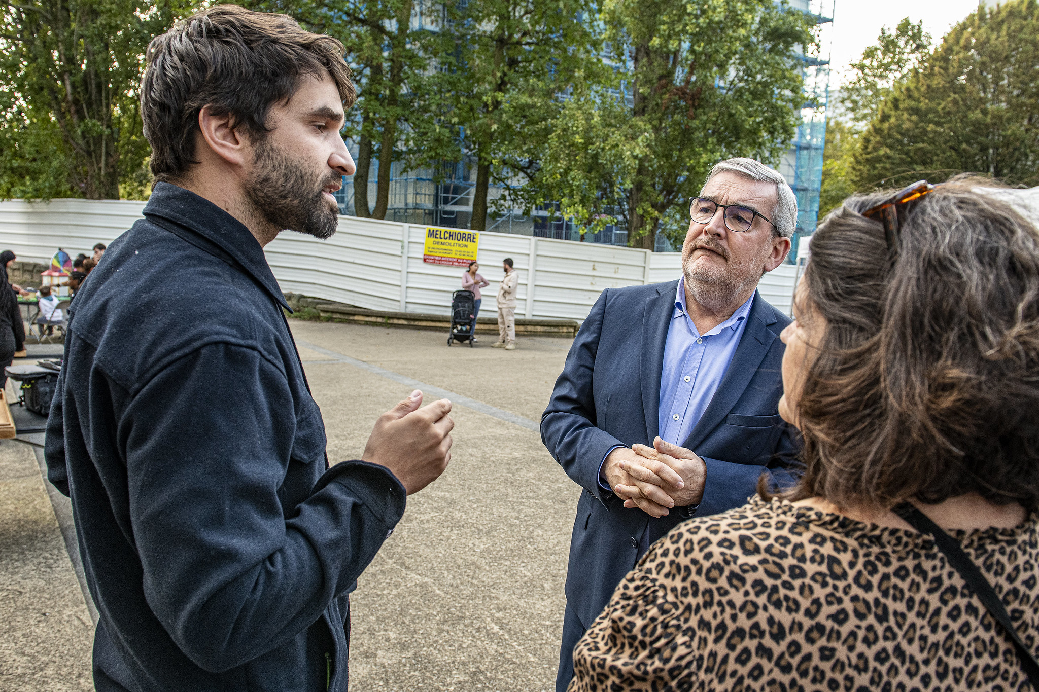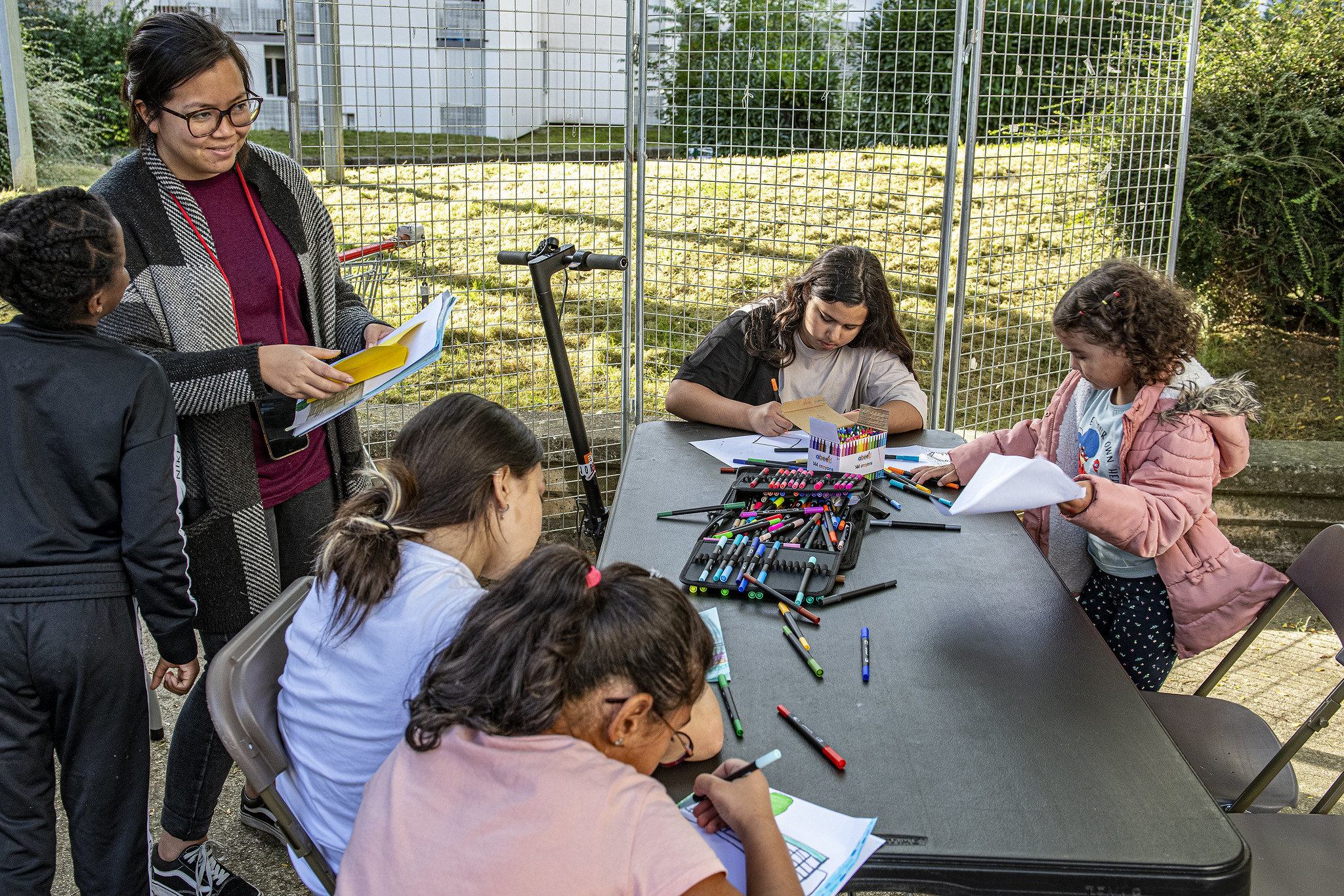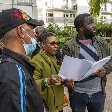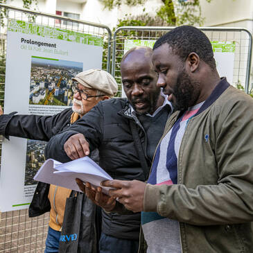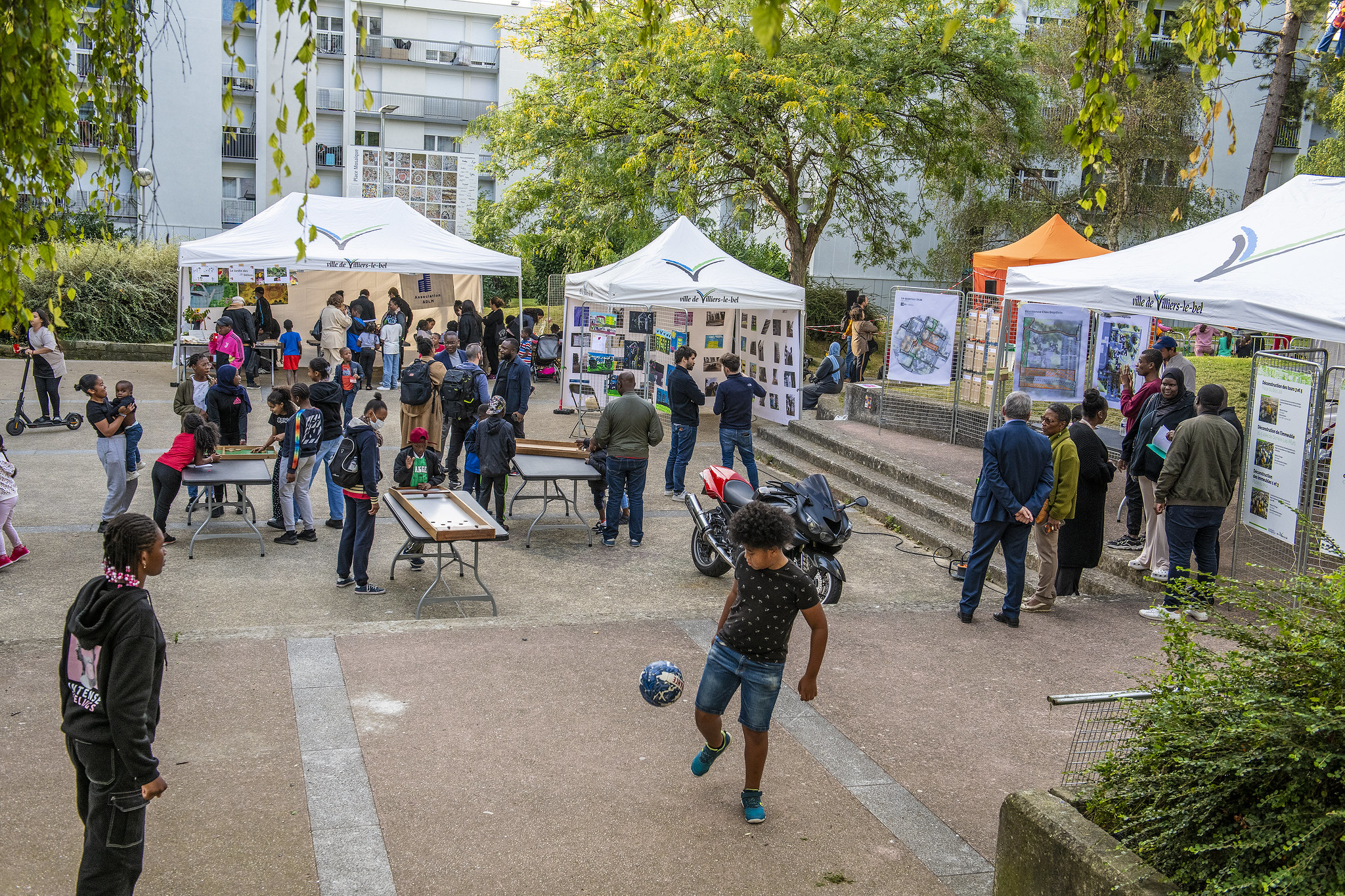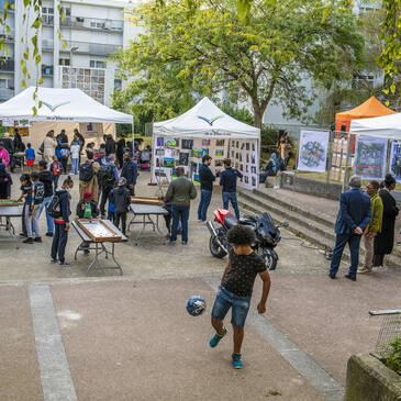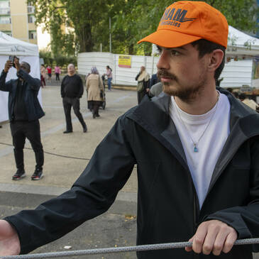 "Tu peux danser avec tes bras ! Avec tes jambes aussi ! Comme si tu flottais dans l'air !" passées quelques secondes d'adaptation, les habitants du quartier de Derrière-les-murs qui ont accepté de se faire hisser au bout d'une corde par des gens de l'assistance, on pu se détendre et flotter dans le ciel de la place de la Traverse. Alors que les tours 3 et 5 place du Bois Joli étaient en train d'être détruite, ce spectacle "Hisse Emoi" proposait de prendre de la hauteur alors qu'au sol on discutait entre autres des projets à venir por le quartier !