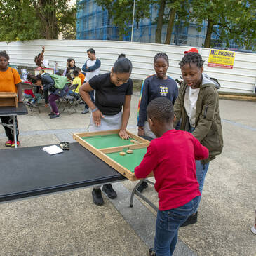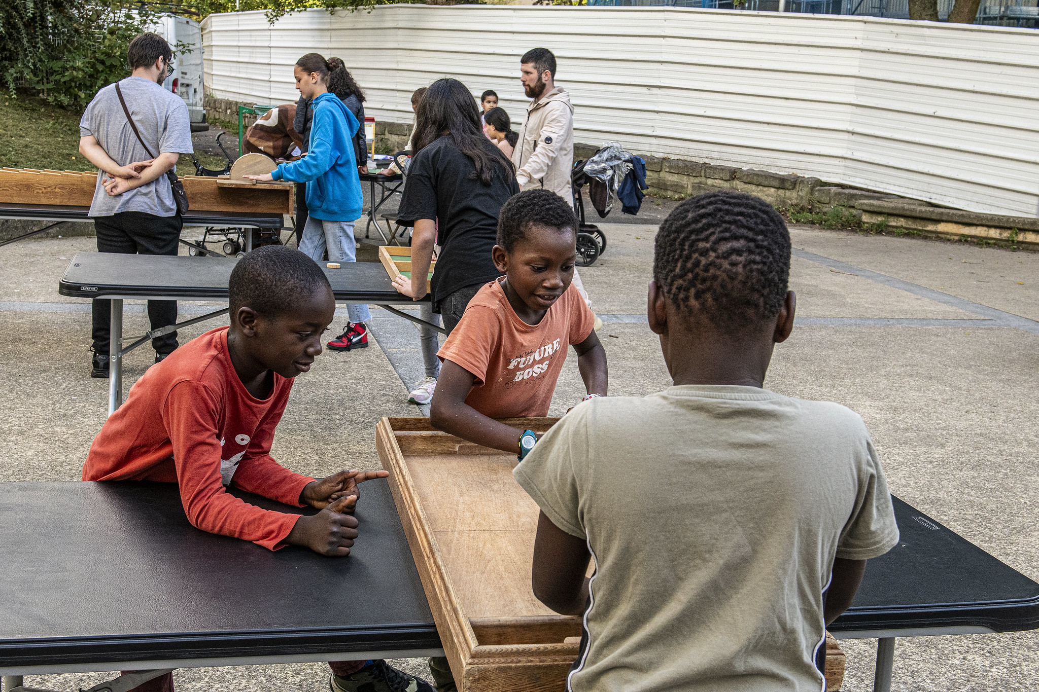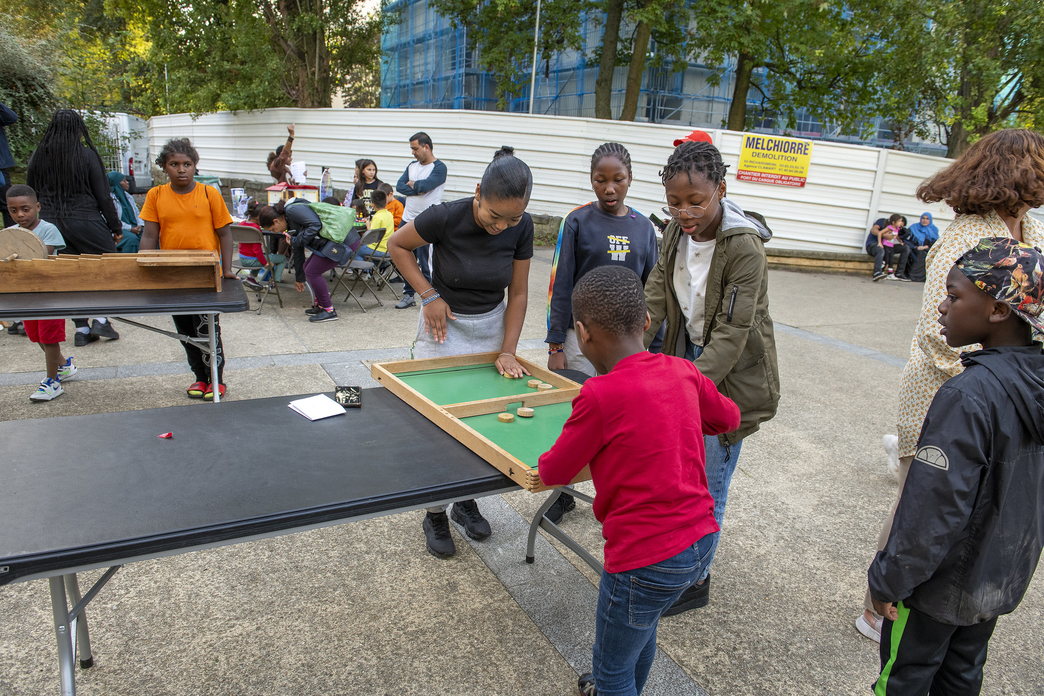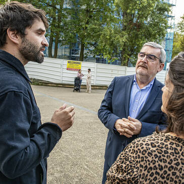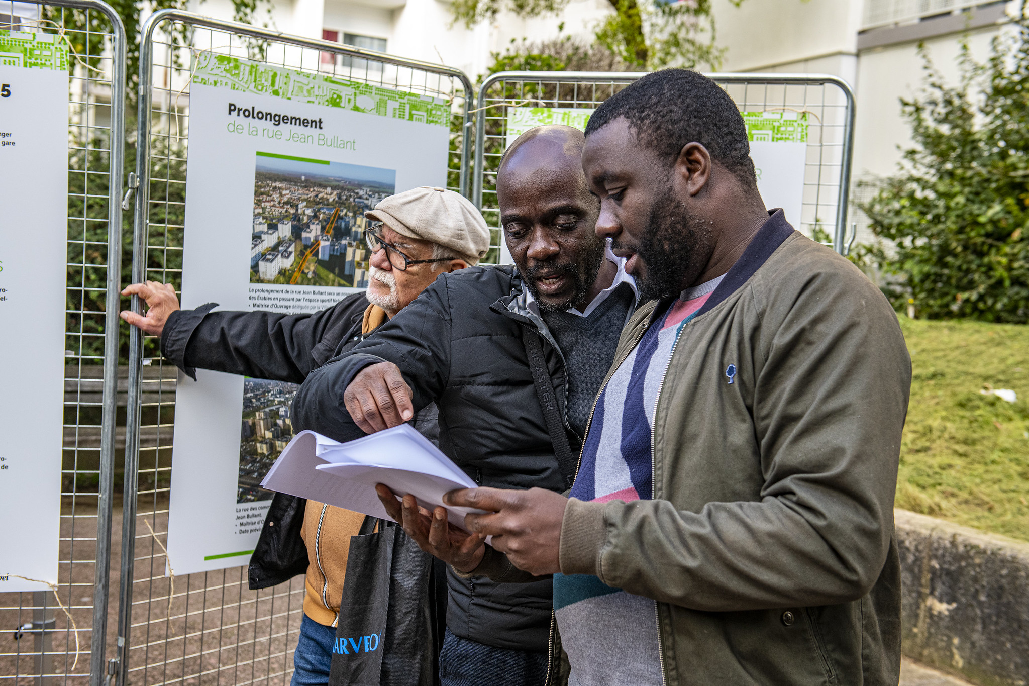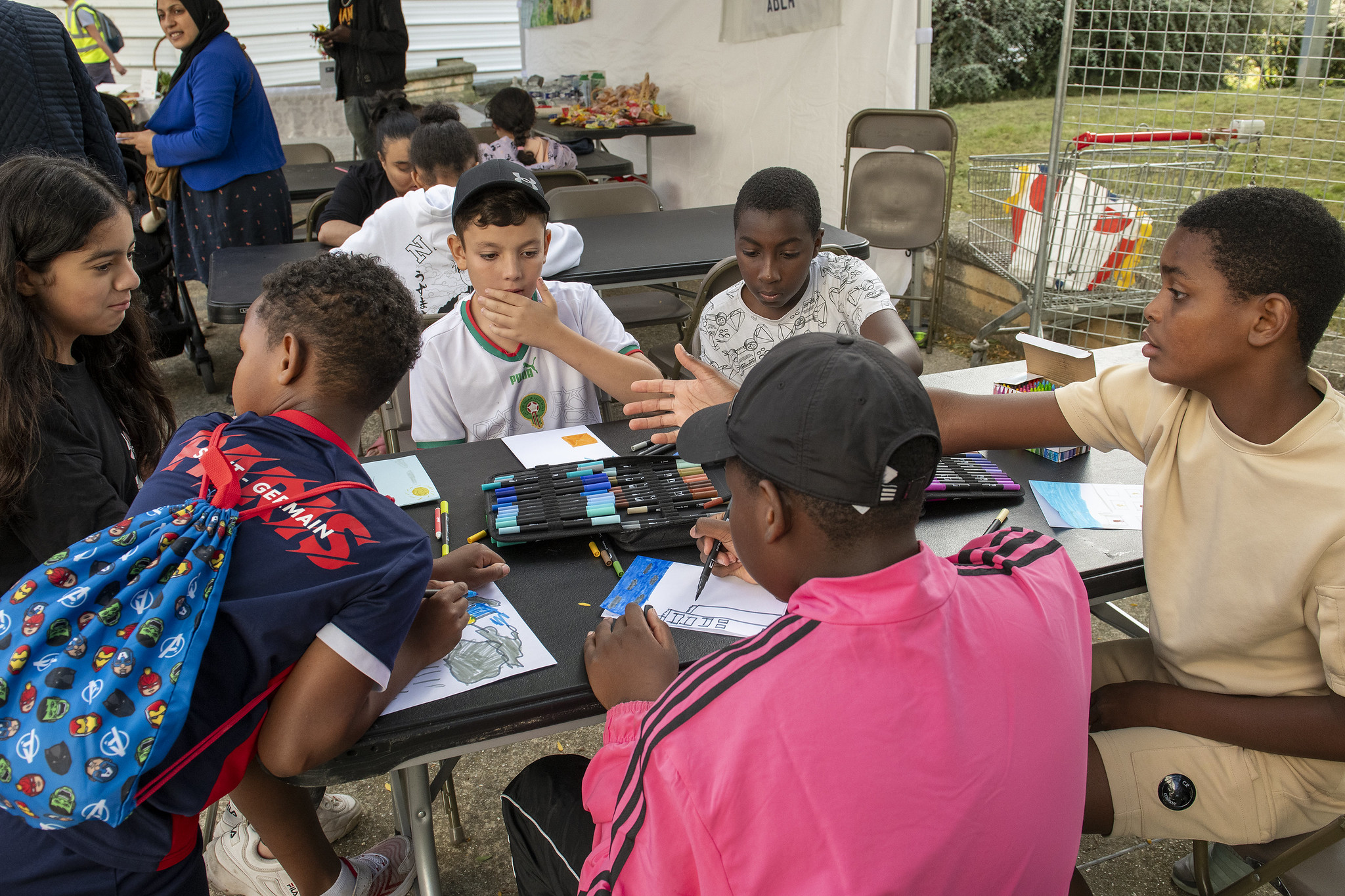 "Tu peux danser avec tes bras ! Avec tes jambes aussi ! Comme si tu flottais dans l'air !" passées quelques secondes d'adaptation, les habitants du quartier de Derrière-les-murs qui ont accepté de se faire hisser au bout d'une corde par des gens de l'assistance, on pu se détendre et flotter dans le ciel de la place de la Traverse. Alors que les tours 3 et 5 place du Bois Joli étaient en train d'être détruite, ce spectacle "Hisse Emoi" proposait de prendre de la hauteur alors qu'au sol on discutait entre autres des projets à venir por le quartier !