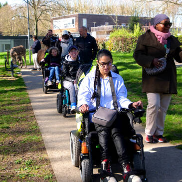 Grand élan de solidarité autour des personnes porteuses de handicap pour cette édition 2025 qui a lieu le mardi 1er avril. Les Beauvillésoises et les Beauvillésois étaient très nombreux à réaliser, avec elles, un parcours à travers la ville. L'âne Oréo et le lama Serge de la ferme pédagogique étaient également présents pour accompagner ce joyeux cortège ! L'objectif de cette action était de comprendre les difficultés rencontrées lors de leurs déplacements quotidiens et d'effectuer un diagnostic en marchant pour répertorier les obstacles et discuter des aménagements possibles. Cette promenade conviviale s'est soldée par un magnifique spectacle de danse inclusive de la compagnie DK-Bel sur le parvis du gymnase Jesse Owens...
