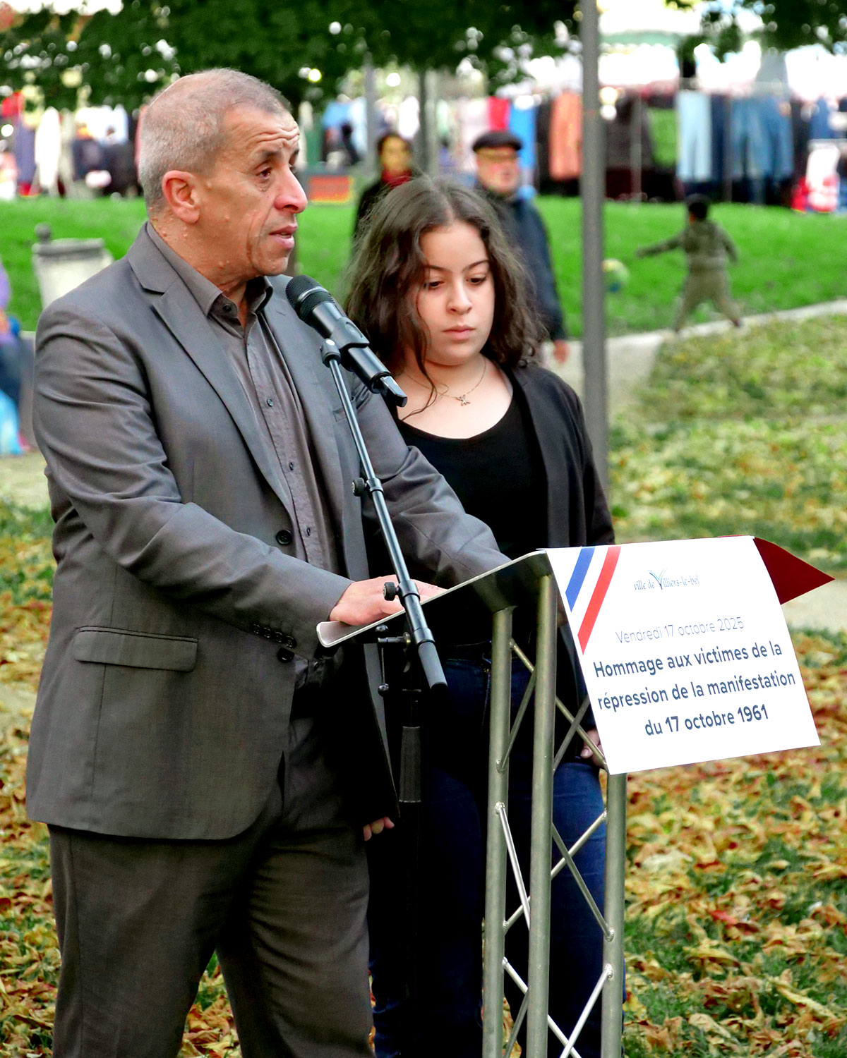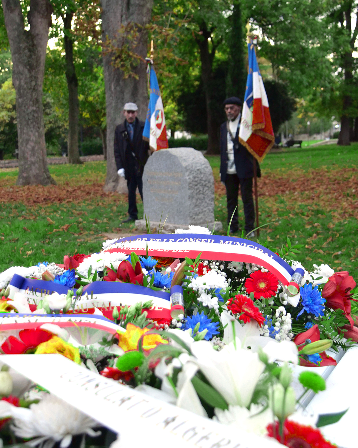 Vendredi 17 octobre 2025, la mémoire des victimes de la sanglante répression de la manifestation pacifique du 17 octobre 1961 a été honorée devant la stèle du parc Jean-Vilar.