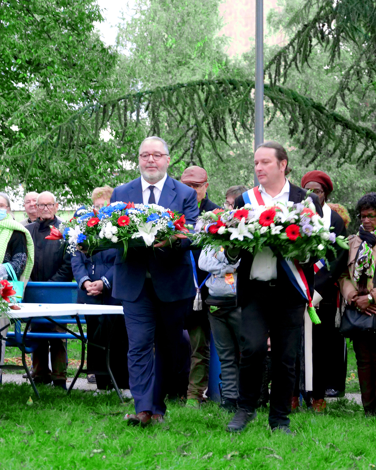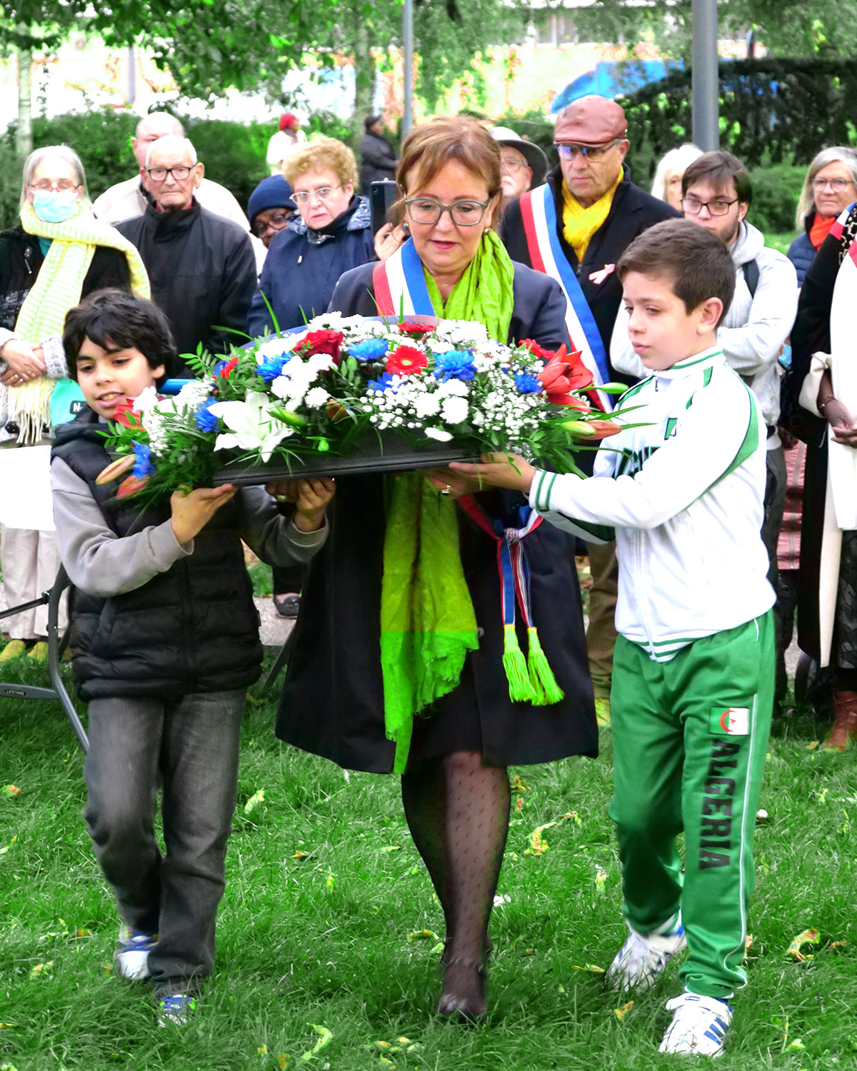 Après les discours de Gourta Kechit, président de l’association « Entre deux rives » de Villiers-le-Bel et de la maire Djida Djallali-techtach, a eu lieu le traditionnel dépôt de gerbe de fleurs.