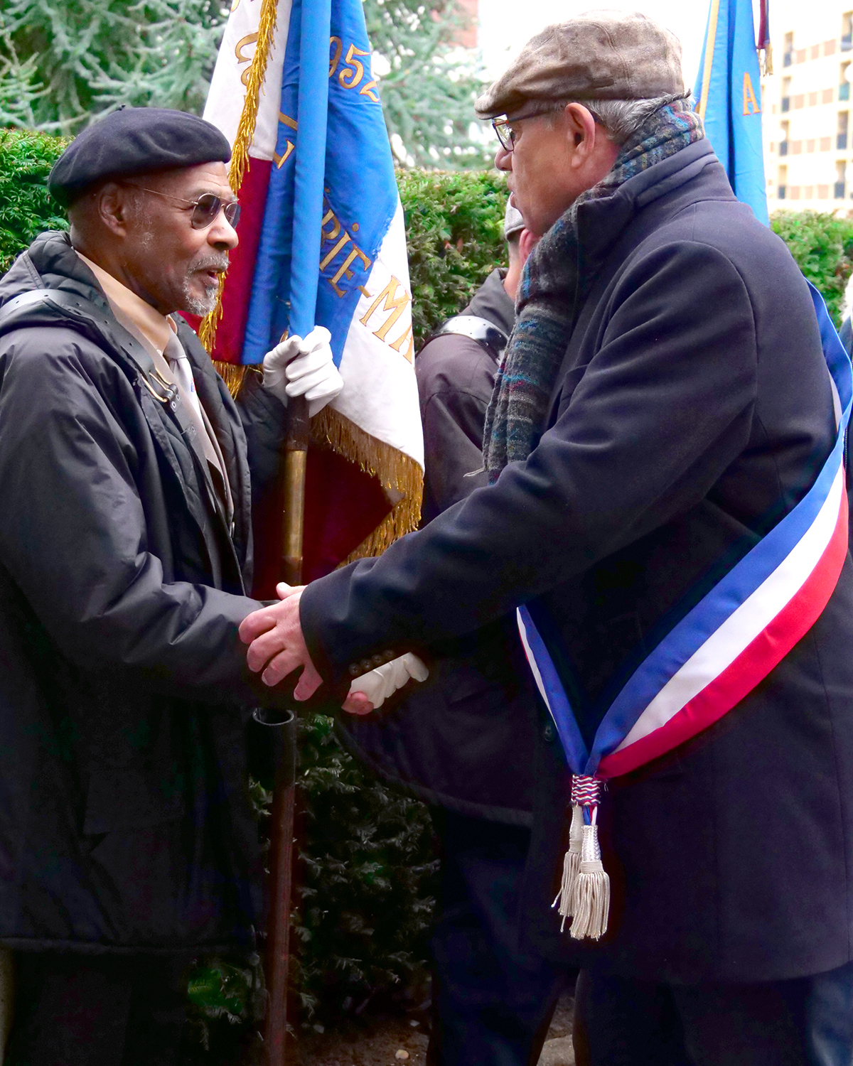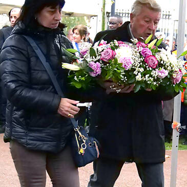 L'hommage s'est poursuivi par la traditionnelle dépose de gerbes de fleurs et par le défilé du cortège dans les allées du parc Jean Vilar jusqu'à l'Espace Marcel Pagnol où toute l'assemblée s'est réunie pour partager un verre de l'amitié et de la fraternité.