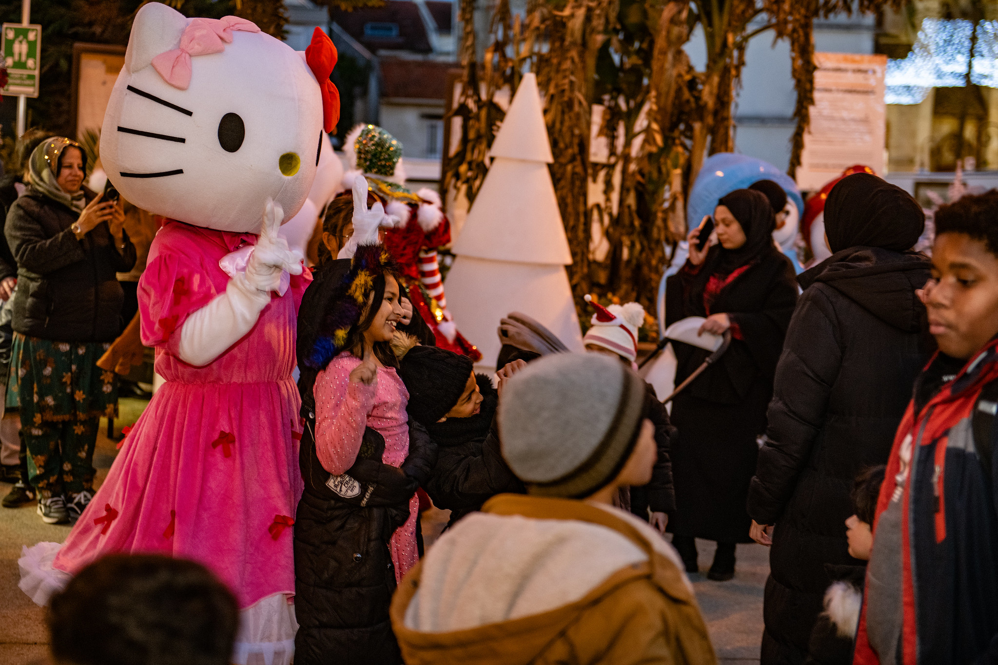 Quel beau spectacle que de voir notre quartier du Village en fête ! Lundi 15 décembre 2025, pour le premier des Noëls solidaires de Villiers, le parvis de la mairie luisait de ses milles lumières. Les enfants étaient extatiques devant les mascottes qui entouraient le Père Noël : de Bumblebee des Transformers, Hello Kitty, Blanche Neige, Buzz l'Éclair, Olaf… Sur la place une chorale d’enfants, des crêpes et autres douceurs sucrées et salées, du chocolat, une bourse aux livres, des jouets grâce à la mobilisation de l’école Marie Curie et des parents d’élèves. Un grand merci à toutes et tous pour ces moments de fêtes qui nous donnent envie de voir la suite dans les autres quartiers !