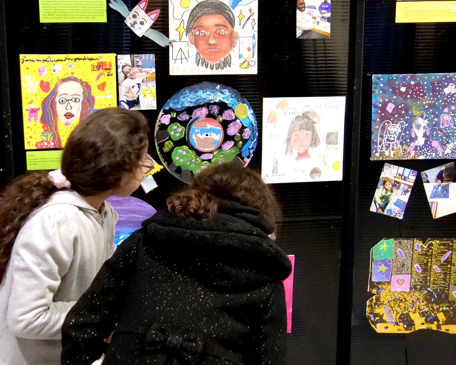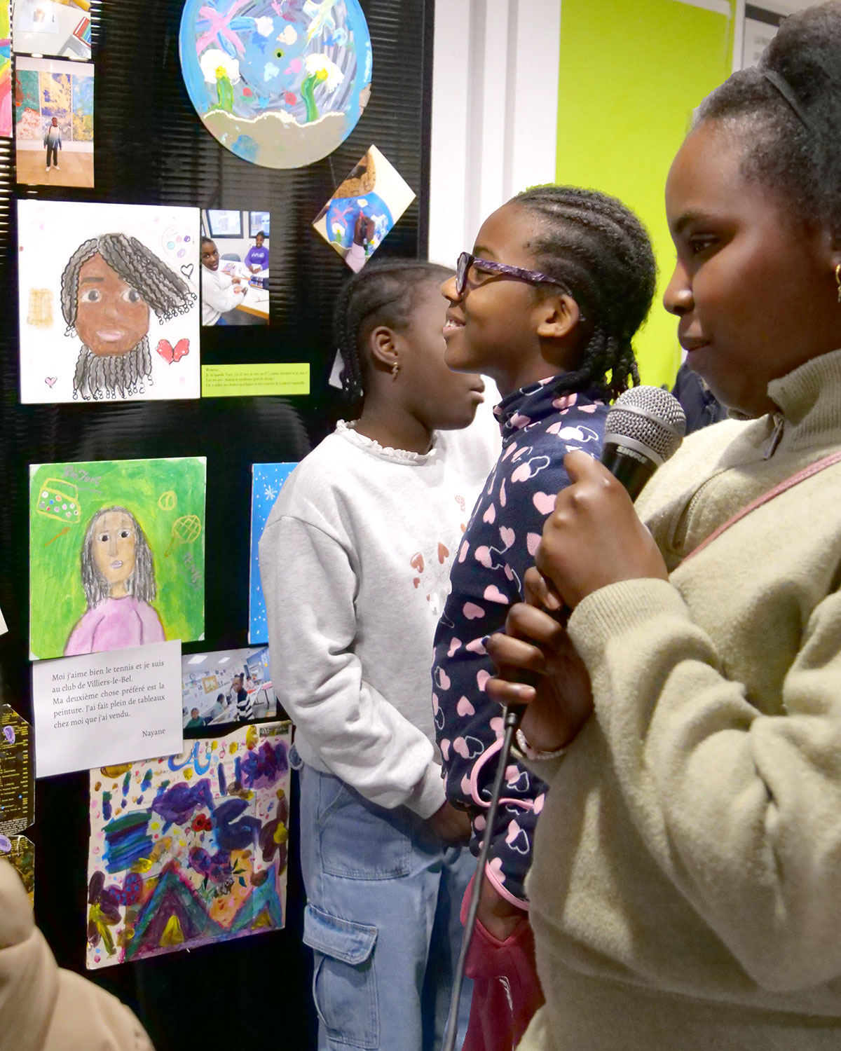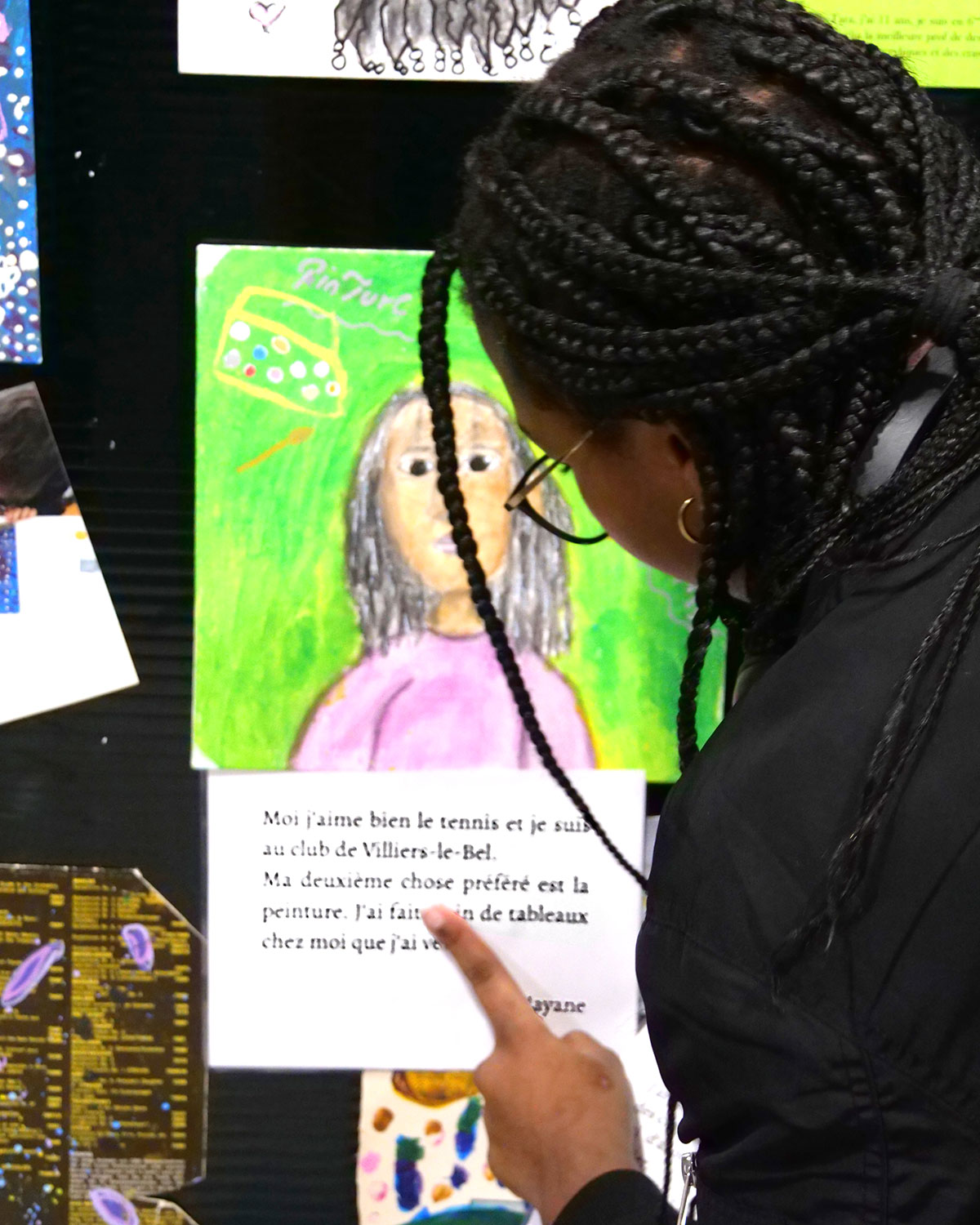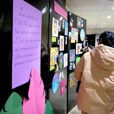 Qu'ils étaient fiers les enfants du centre socioculturel Boris Vian ce vendredi 30 janvier pour leur vernissage ! En effet, près d'une quinzaine d'entre eux ont assisté aux ateliers peinture d'Amalia, organisés en collaboration avec l'association beauvillésoise L'Art Tôt. Peinture gouache ou acrylique, au pinceau ou au crayon, le matériel était adapté à tous, des plus petits aux adolescents. Chacun a pu dessiner son autoportrait, les choses qu'il aime ou simplement sa vision du monde. C'est micro en main qu'ils ont d'ailleurs détaillé les références et symboliques de leurs œuvres, lors de cette soirée de lancement de l'exposition, sous le regard admiratif de leurs parents et amis. Vous pouvez d'ailleurs toujours les admirer dans le hall du centre. Un très grand bravo à eux pour leur art et leur talent !