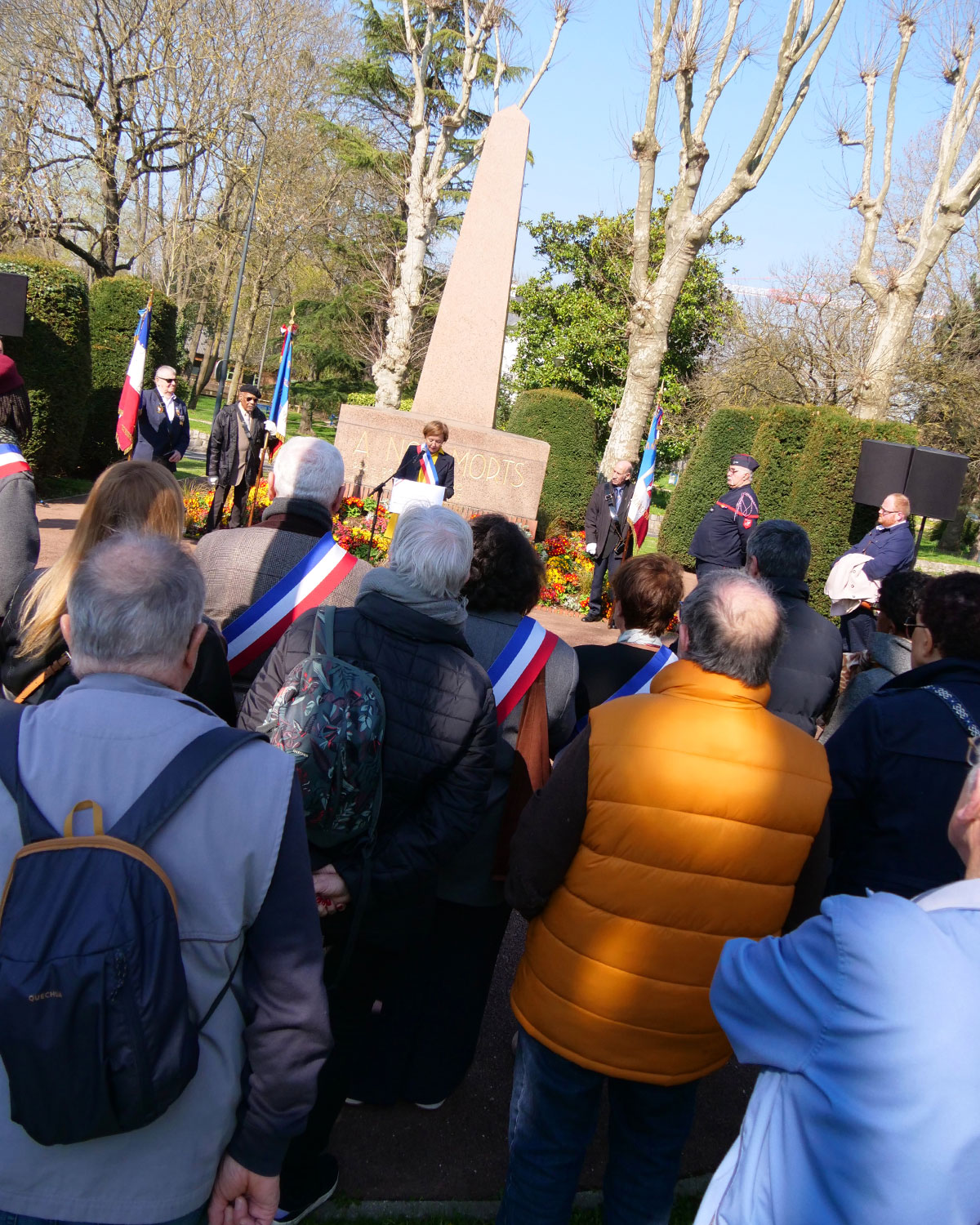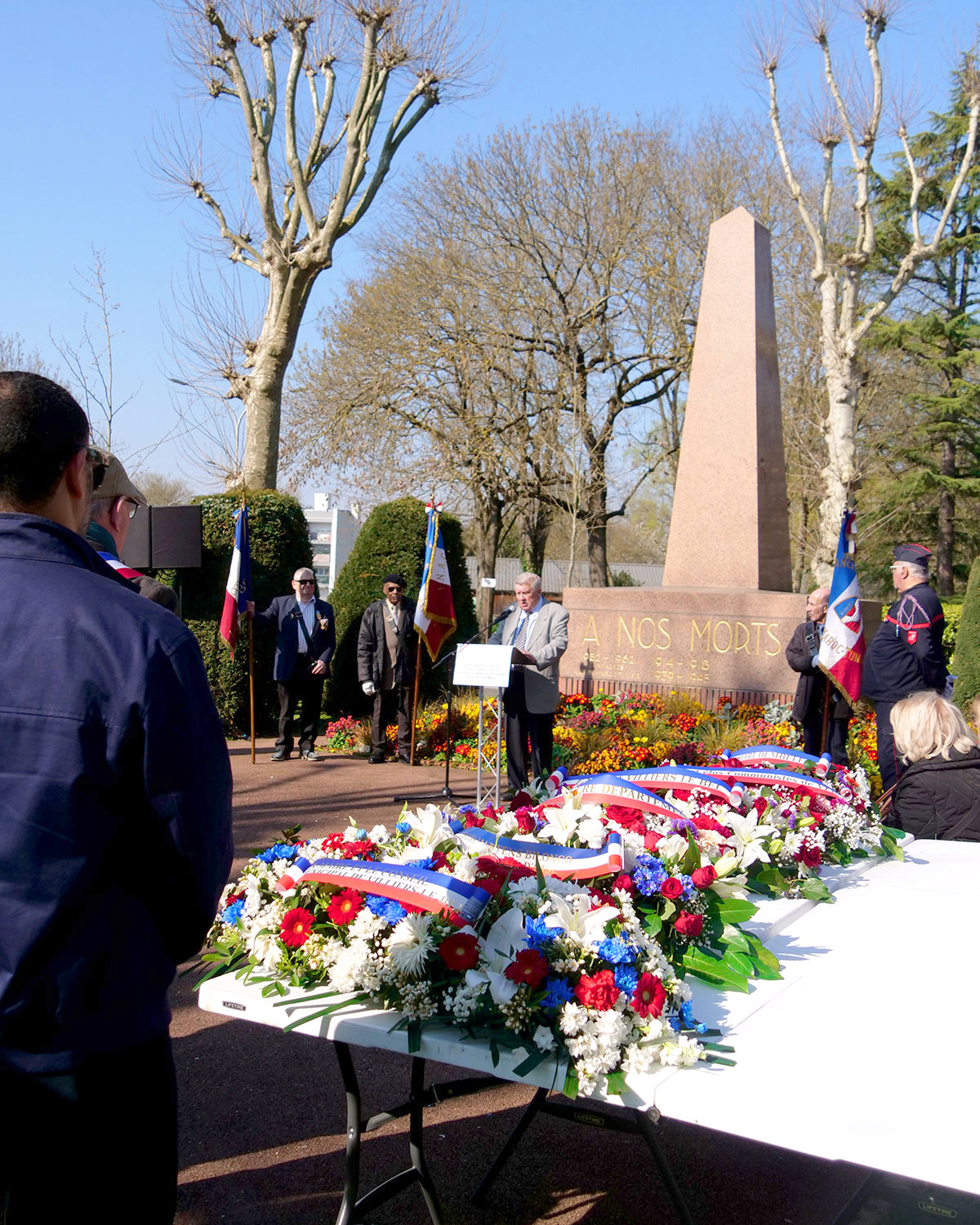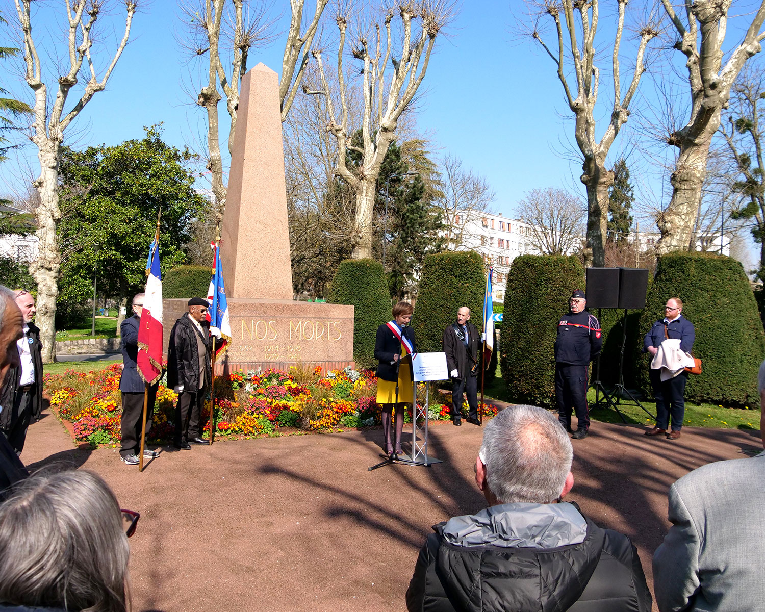 Le cortège a ensuite défilé jusqu'au Monument aux Morts de la place Victor Hugo pour réitérer le cérémonial. S'en sont suivies les allocutions de Mr Chrétien, responsable de la FNACA de Villiers-le-Bel (Fédération nationale des anciens Combattants d'Algérie) et de madame la Maire.