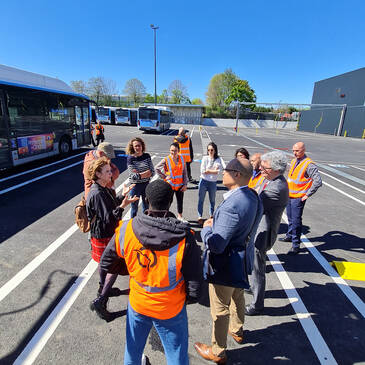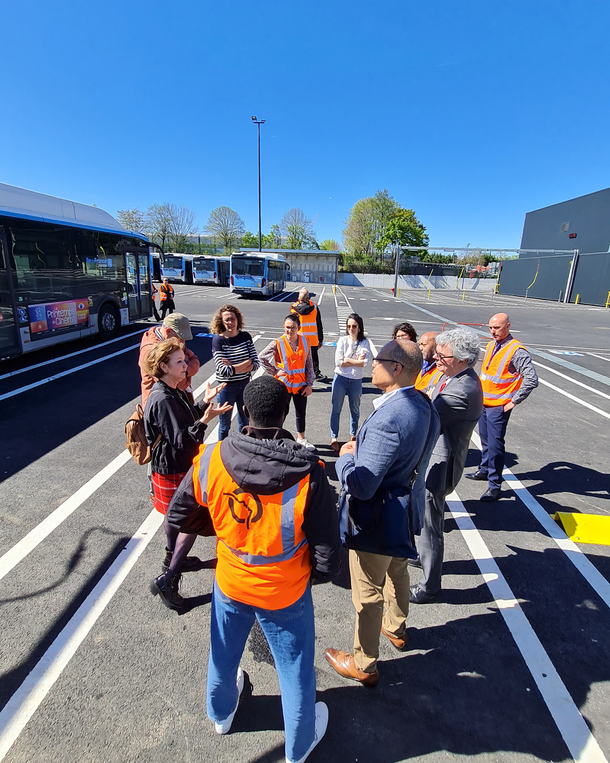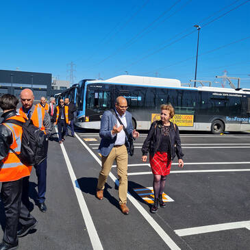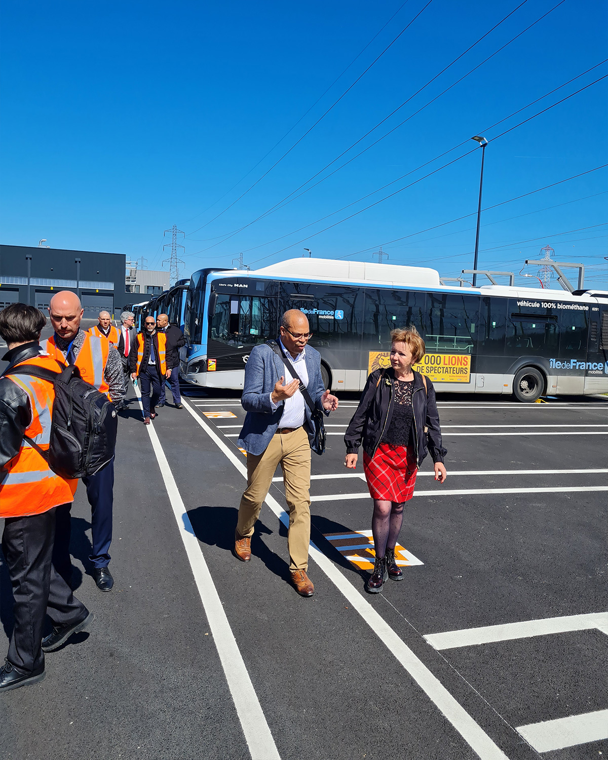Ce vaste plateau technique a la capacité de recevoir 115 bus 100% Biométhane. Bornes de recharge, station de lavage, équipements de levage, fosses d’entretien… les élus et agents municipaux présents ont découvert le vaste plateau technique de ce complexe construit selon des normes de Haute Qualité Environnementale avec notamment un traitement des eaux usées sur site, jusqu'à la terrasse du réfectoire qui offre une vue imprenable sur la plaine de France, notre Parc des sports et des loisirs, et, comble du chic, sur la tour Eiffel.