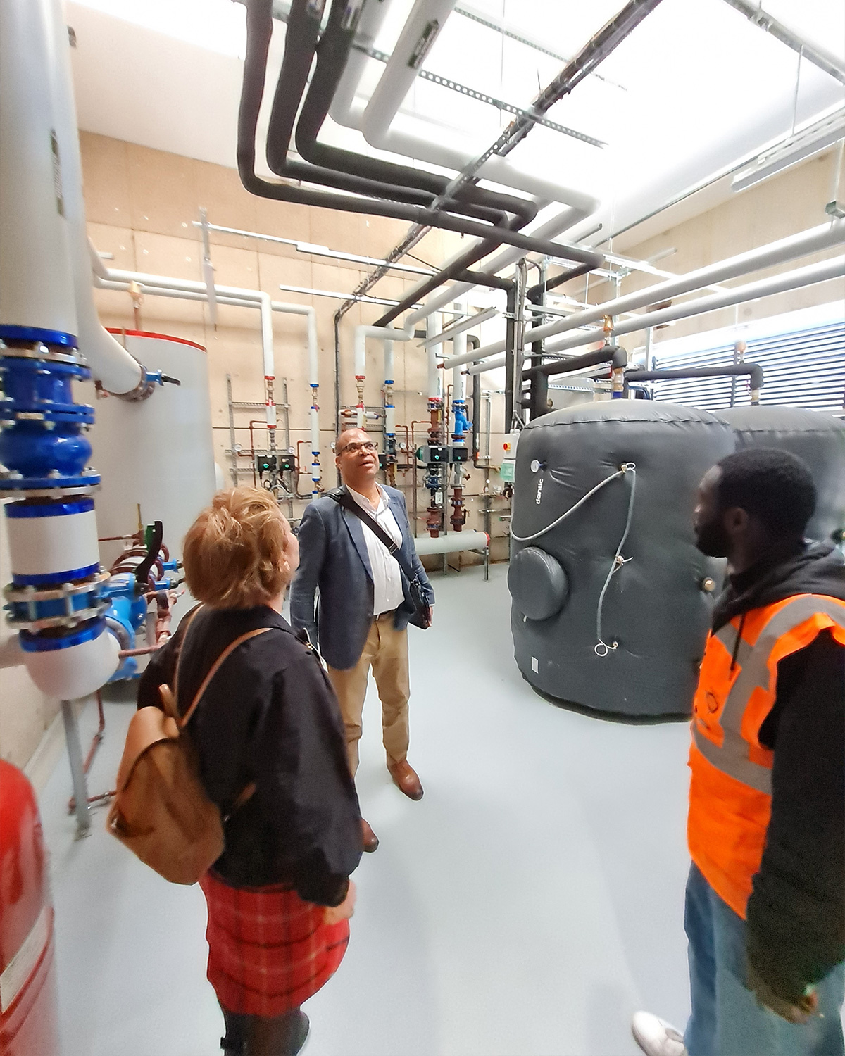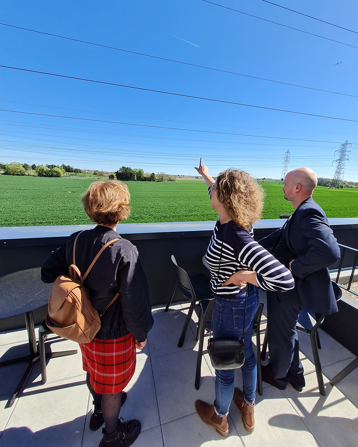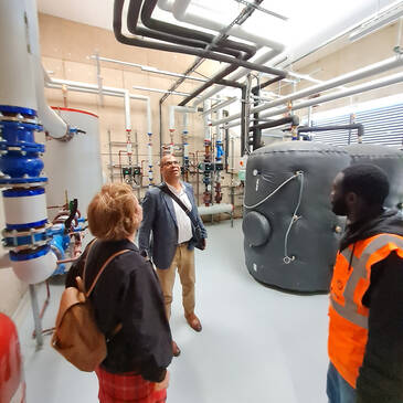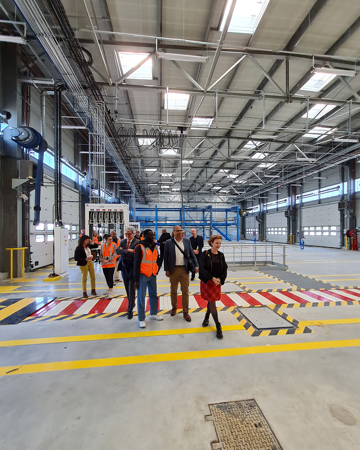 Ce vaste plateau technique a la capacité de recevoir 115 bus 100% Biométhane. Bornes de recharge, station de lavage, équipements de levage, fosses d’entretien… les élus et agents municipaux présents ont découvert le vaste plateau technique de ce complexe construit selon des normes de Haute Qualité Environnementale avec notamment un traitement des eaux usées sur site, jusqu'à la terrasse du réfectoire qui offre une vue imprenable sur la plaine de France, notre Parc des sports et des loisirs, et, comble du chic, sur la tour Eiffel.