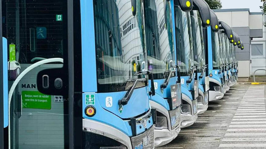 Déjà, les bus biométhanes flambant neufs sont alignés sur le parking, prêts à concrétiser la transition énergétique et à permettre le développement de l’offre de transport public.